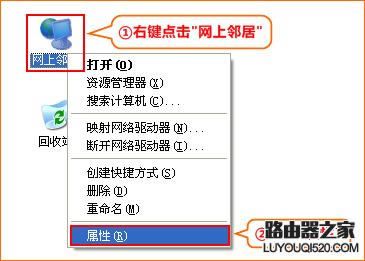 1.右鍵單擊桌面上的網(wǎng)上鄰居,選擇屬性: