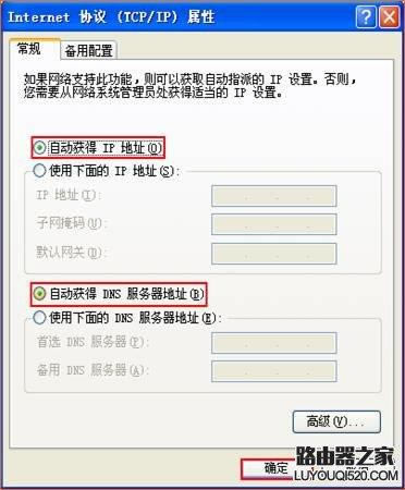 自動(dòng)獲取(動(dòng)態(tài)IP):在設(shè)置頁(yè)面中選擇自動(dòng)獲取-點(diǎn)擊確定。