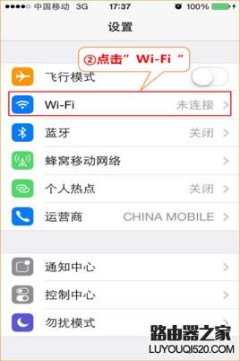 IOS系統(tǒng): 打開(kāi)iPhone手機(jī)設(shè)置菜單-點(diǎn)擊Wi-Fi”: