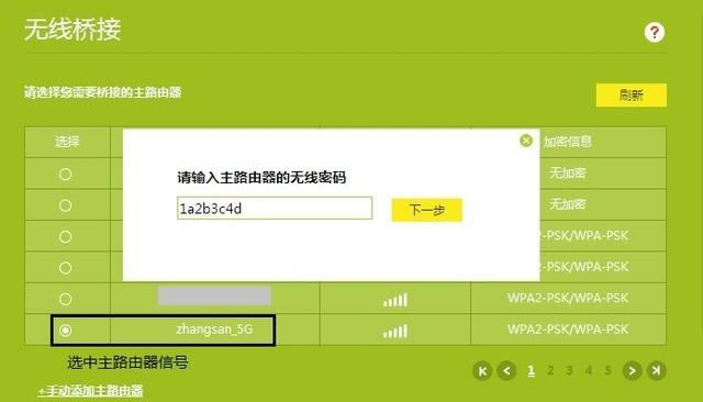 掃描主路由器信號(hào)后,輸入主路由器的無線密碼。