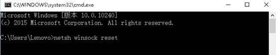 2、在打開的DOS輸入命令窗口 netsh winsock reset